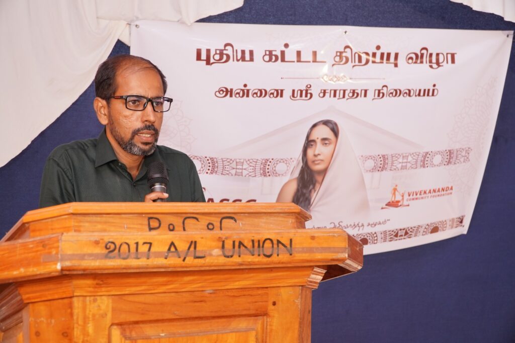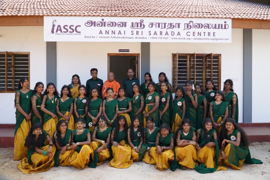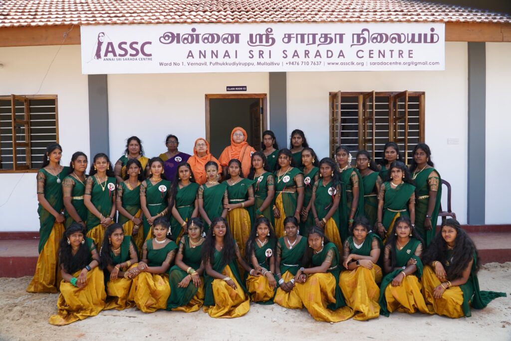 The Vivekananda Community Foundation, which carries out activities to strengthen social change, established the Annai Sri Saradha Center in 2019 at Puthukkudiyiruppu in Mullaitivu, a disadvantaged region. Since its establishment, the center has been implementing various activities for girls such as providing special meals, after-school special classes, clothing for students on special occasions, and learning materials. Today, the center serves as a strong support for the educational journey of 61 female students.