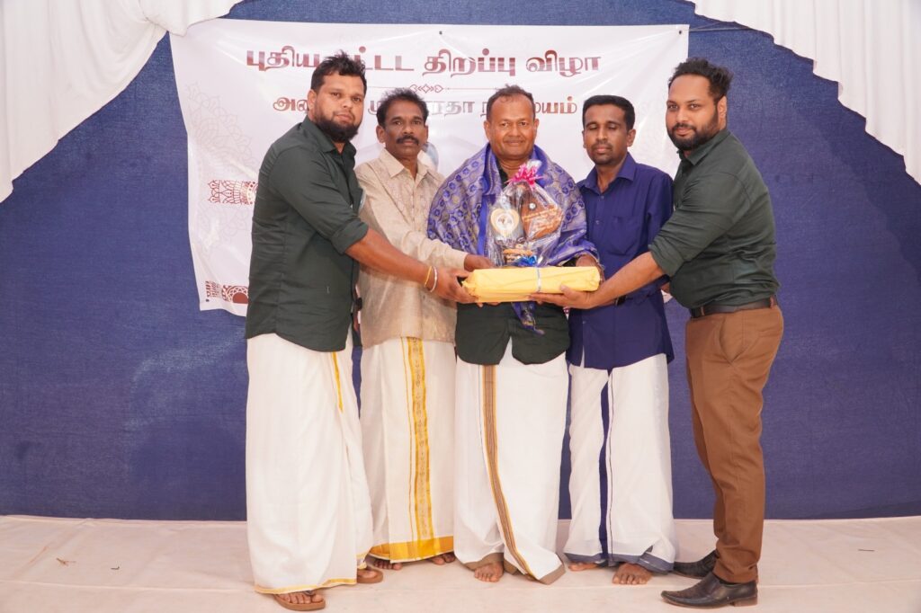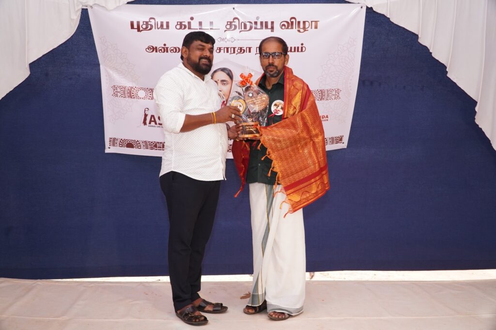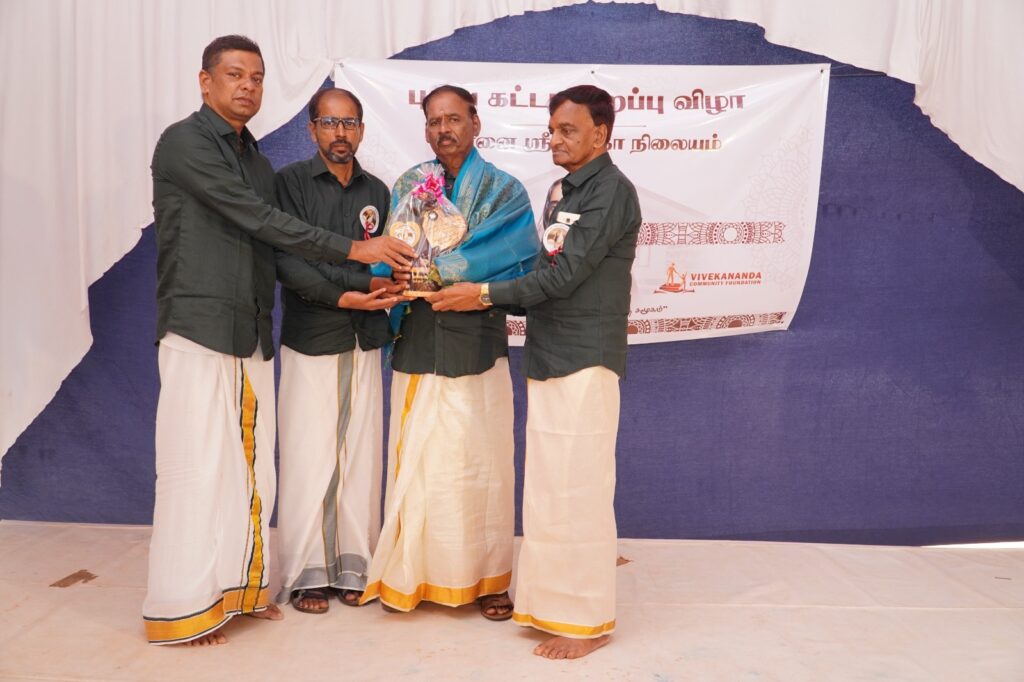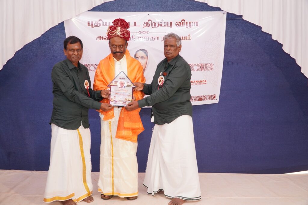Donors and supporters who contributed to the completion of the new building and the opening ceremony were honored with mementos. These included Dr. V. Paramanathan (London), Engineer K. Arunkumar (London), and Mr. K. Pratheeswaran, Executive Director of the Vivekananda Community Foundation. The Chairman, Manager, and Technical Officer of the Annai Sri Saradha Center were also honored.